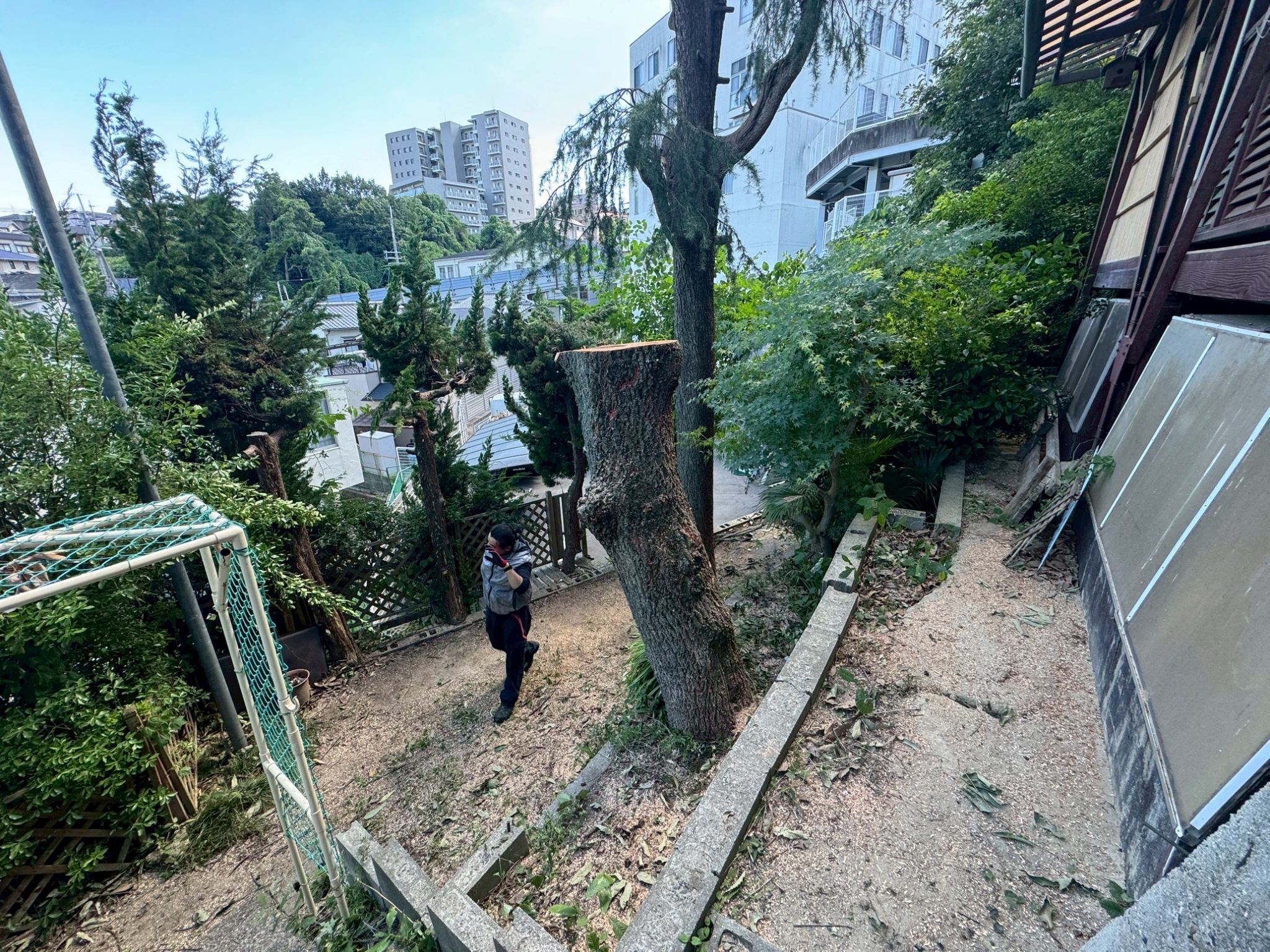 「台風の時に倒れてこないか心配だったんですけど切ってもらって安心しました!」と喜んでいただけました。