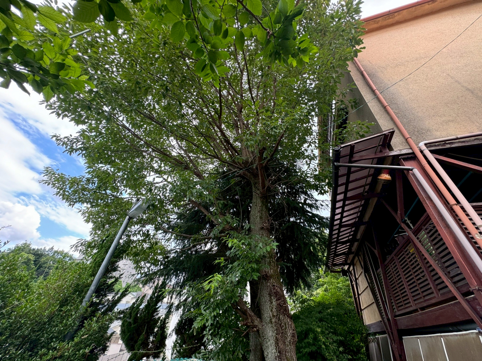 橿原市の管理会社様より、「幹も太く高木になりすぎている木がある伐採してほしい。」とご相談がありました!