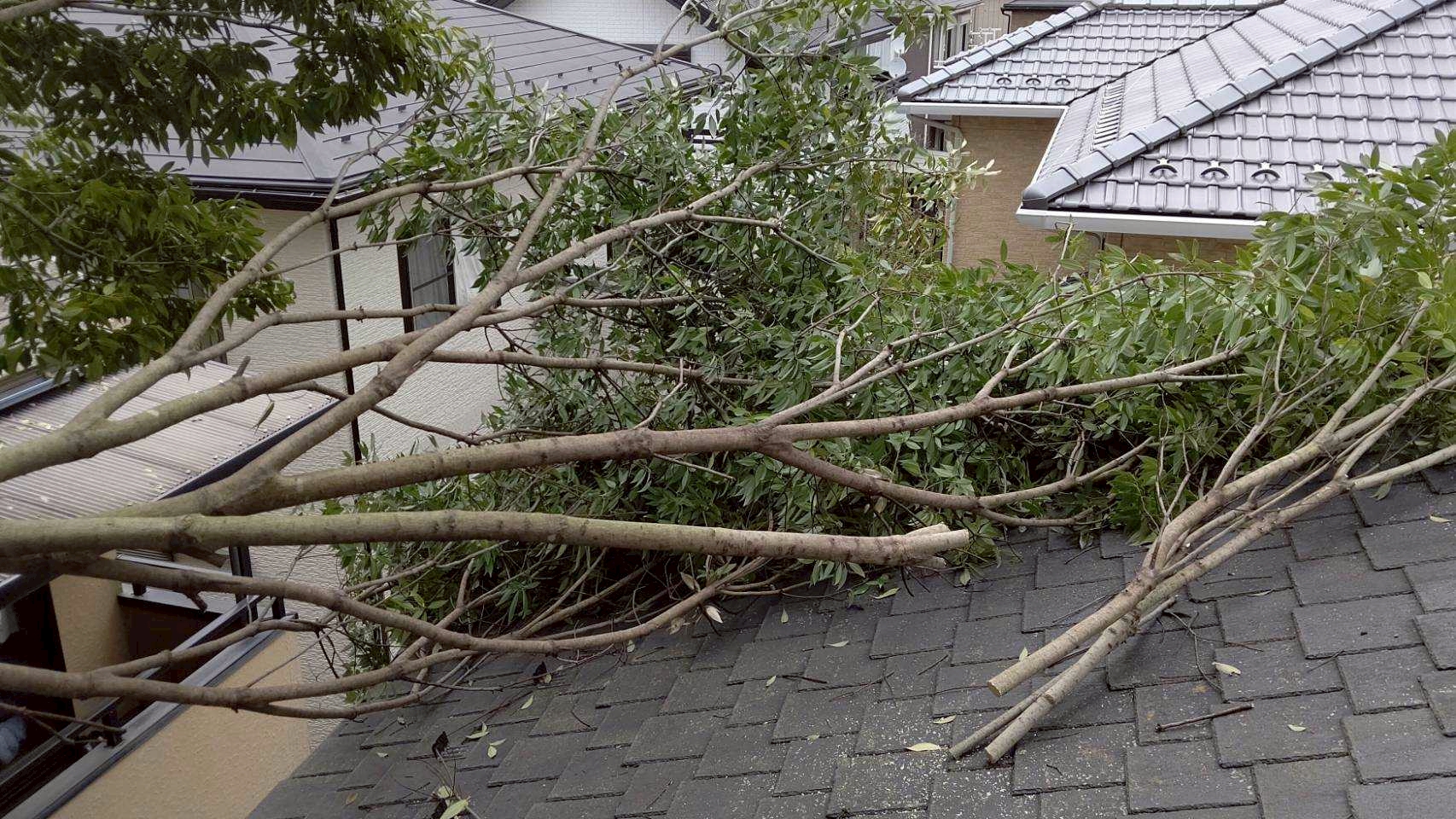 大きな木は強風で倒れる前に伐採するのが安心です。